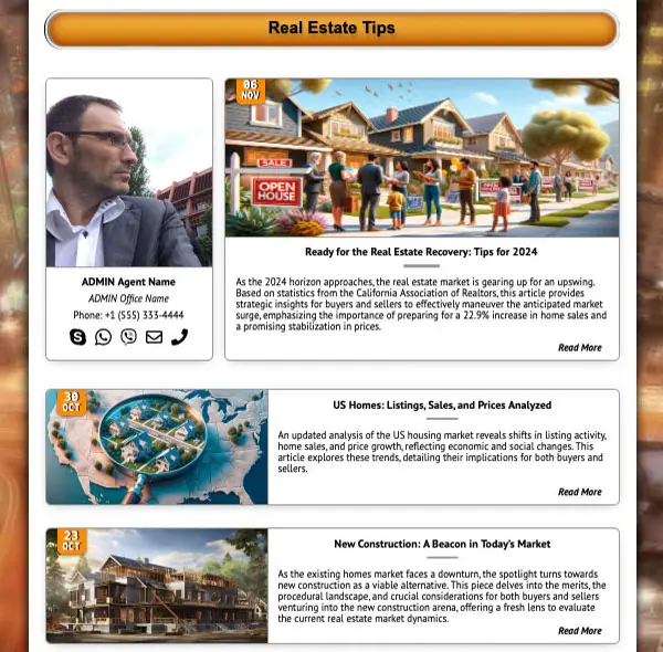 Your blog is a powerful tool to showcase your expertise and build trust. Share real estate tips, local market updates, and community news to attract more visitors and generate quality leads.