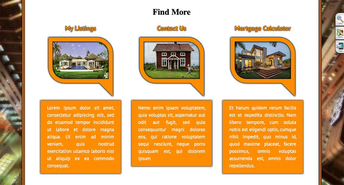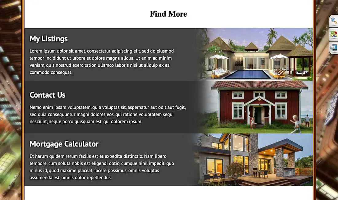 This block is the fastest way to guide visitors to the pages that matter most — your listings, contact details, or tools like a mortgage calculator. Choose the style you prefer, and the colors will automatically match your website theme.